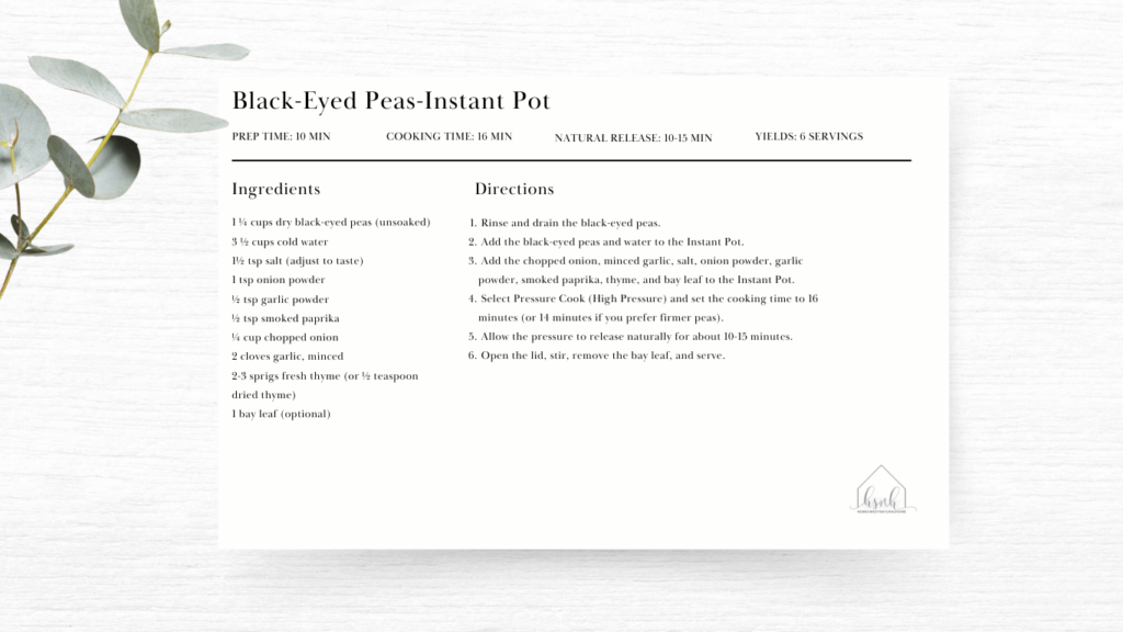 • 1 1/4 cups dry black-eyed peas (unsoaked)